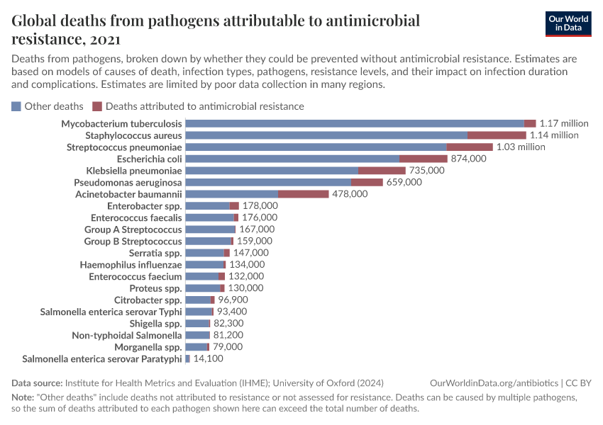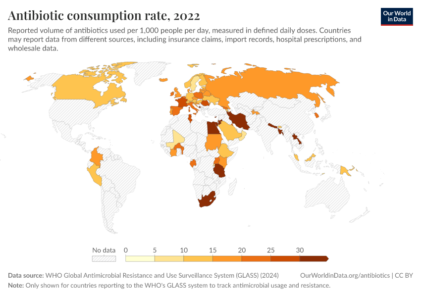 Saloni Dattani, Fiona Spooner, Hannah Ritchie, and Max Roser (2024) - “Antibiotics and Antibiotic Resistance” Published online at OurWorldinData.org. Retrieved from: 'https://ourworldindata.org/antibiotics' [Online Resource]BibTeX citation