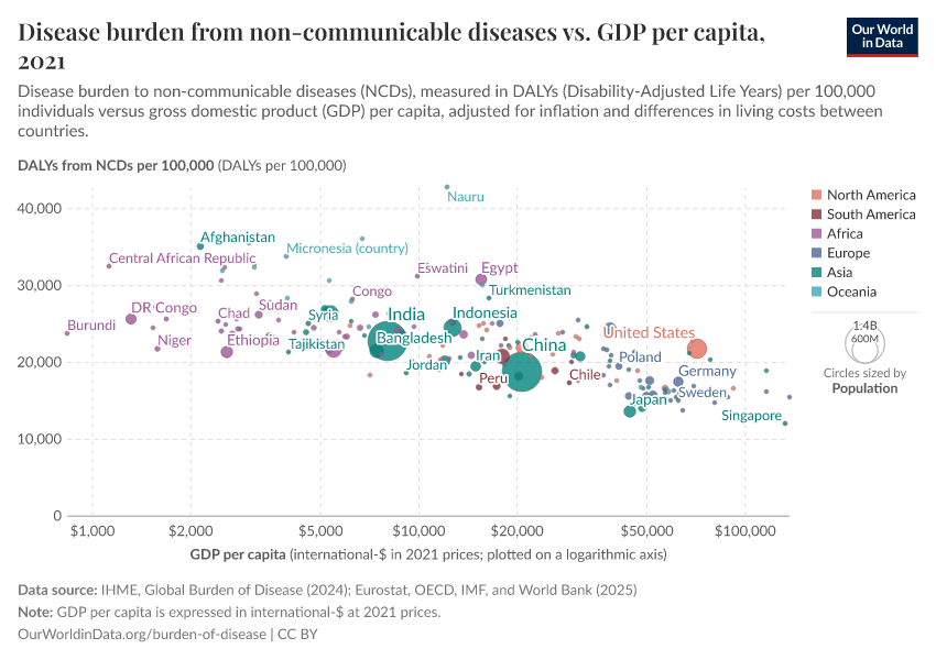 The visualizations here focus on the disease burden resulting from non-communicable diseases (NCDs).