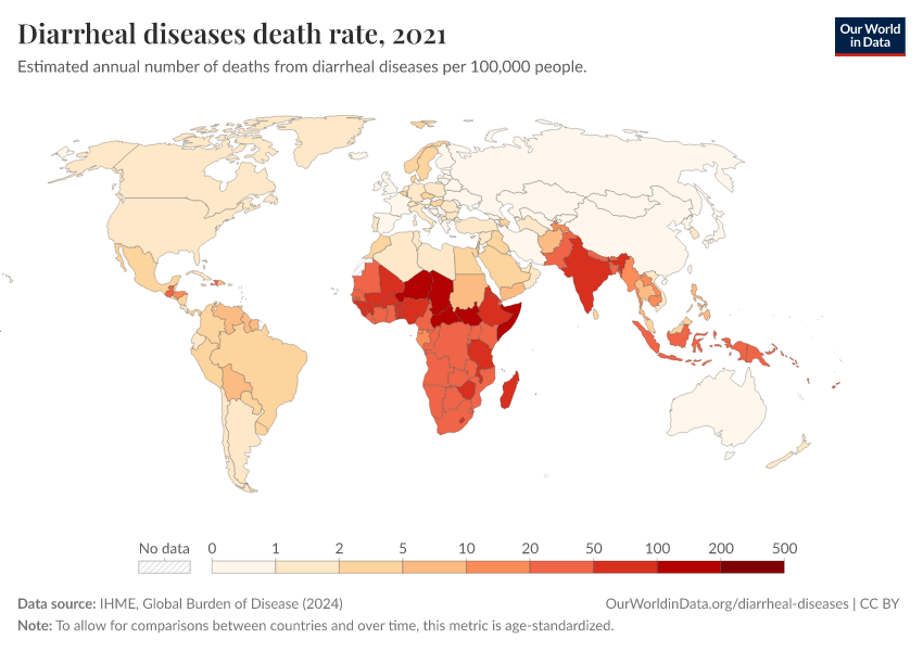 Saloni Dattani, Fiona Spooner, Hannah Ritchie, and Max Roser (2023) - “Diarrheal Diseases” Published online at OurWorldinData.org. Retrieved from: 'https://ourworldindata.org/diarrheal-diseases' [Online Resource]BibTeX citation