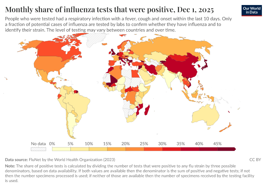 Explore global data produced by the World Health Organization on influenza symptoms and cases.