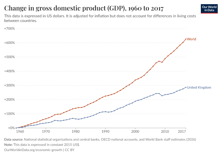 “Data Page: Gross domestic product (GDP)”, part of the following publication: Max Roser, Bertha Rohenkohl, Pablo Arriagada, Joe Hasell, Hannah Ritchie, and Esteban Ortiz-Ospina (2023) - “Economic Growth”. Data adapted from National statistical organizations and central banks, OECD national accounts, and World Bank staff estimates. Retrieved from https://archive.ourworldindata.org/20260112-111535/grapher/gdp-worldbank-constant-usd.html [online resource] (archived on January 12, 2026).How to cite this data
