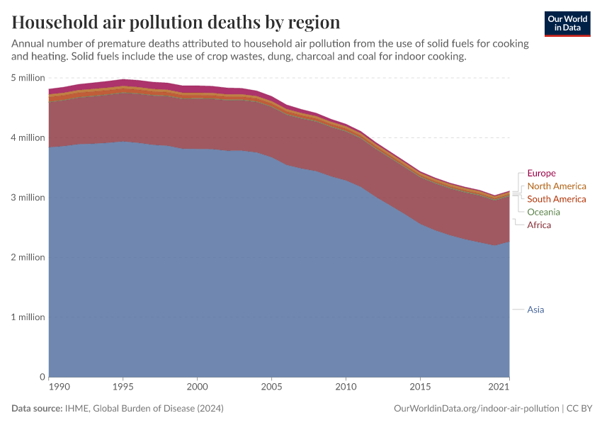 Hannah Ritchie and Max Roser (2022) - “Indoor Air Pollution” Published online at OurWorldinData.org. Retrieved from: 'https://ourworldindata.org/indoor-air-pollution' [Online Resource]BibTeX citation