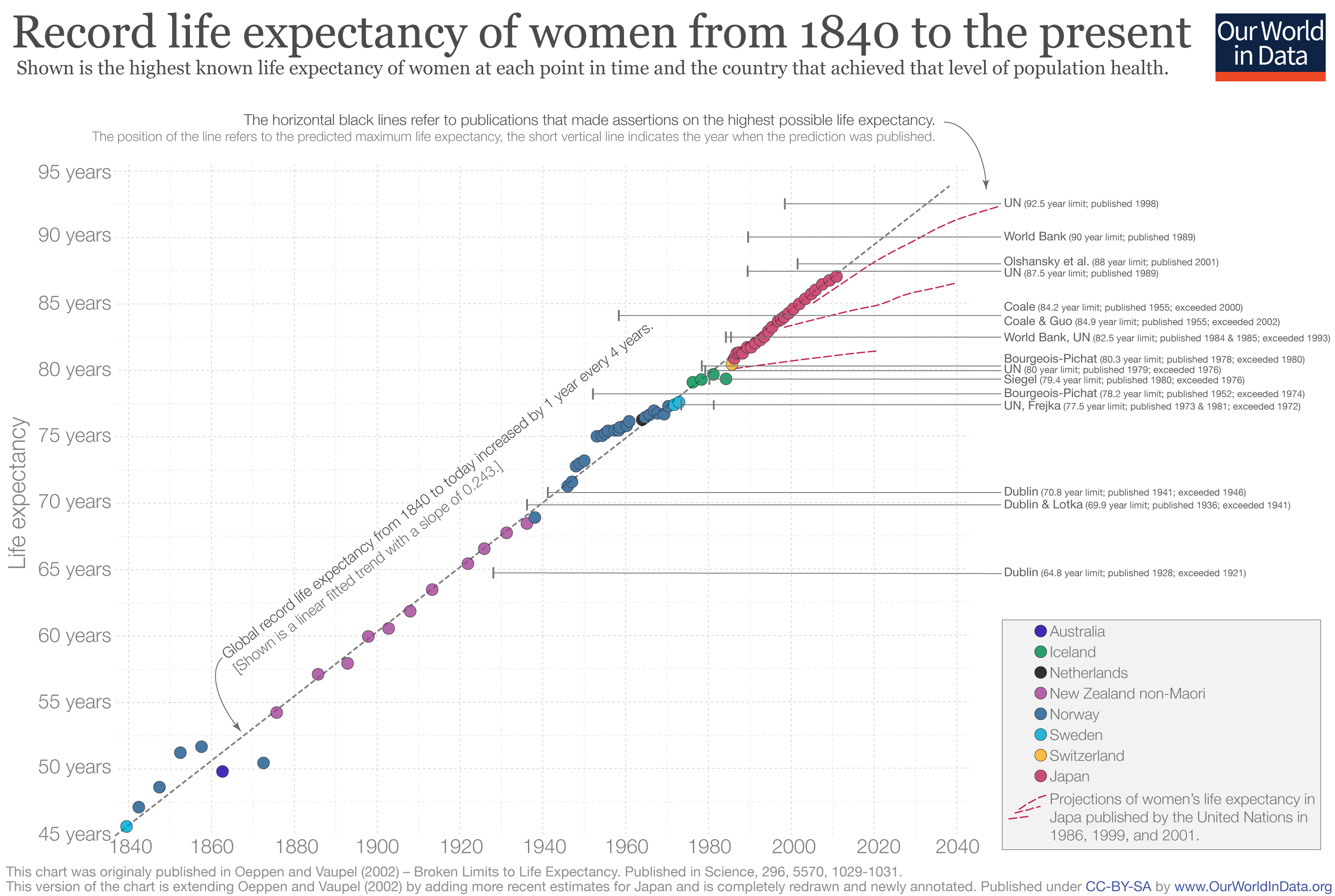 Oeppen, J., & Vaupel, J. W. (2002). Broken Limits to Life Expectancy. Science, 296(5570), 1029–1031. https://doi.org/10.1126/science.1069675